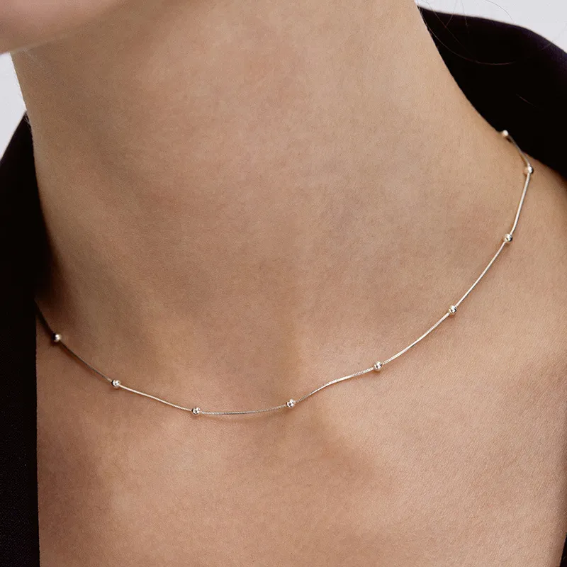 925 Sterling Silver Necklace for Women – Ball Chain & Snake Bones Chain Qingdao Ornament – Elegant Simplicity and Timeless Style
