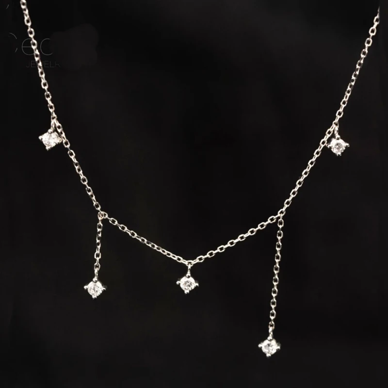 925 Sterling Silver Zircon Star Charms Necklace