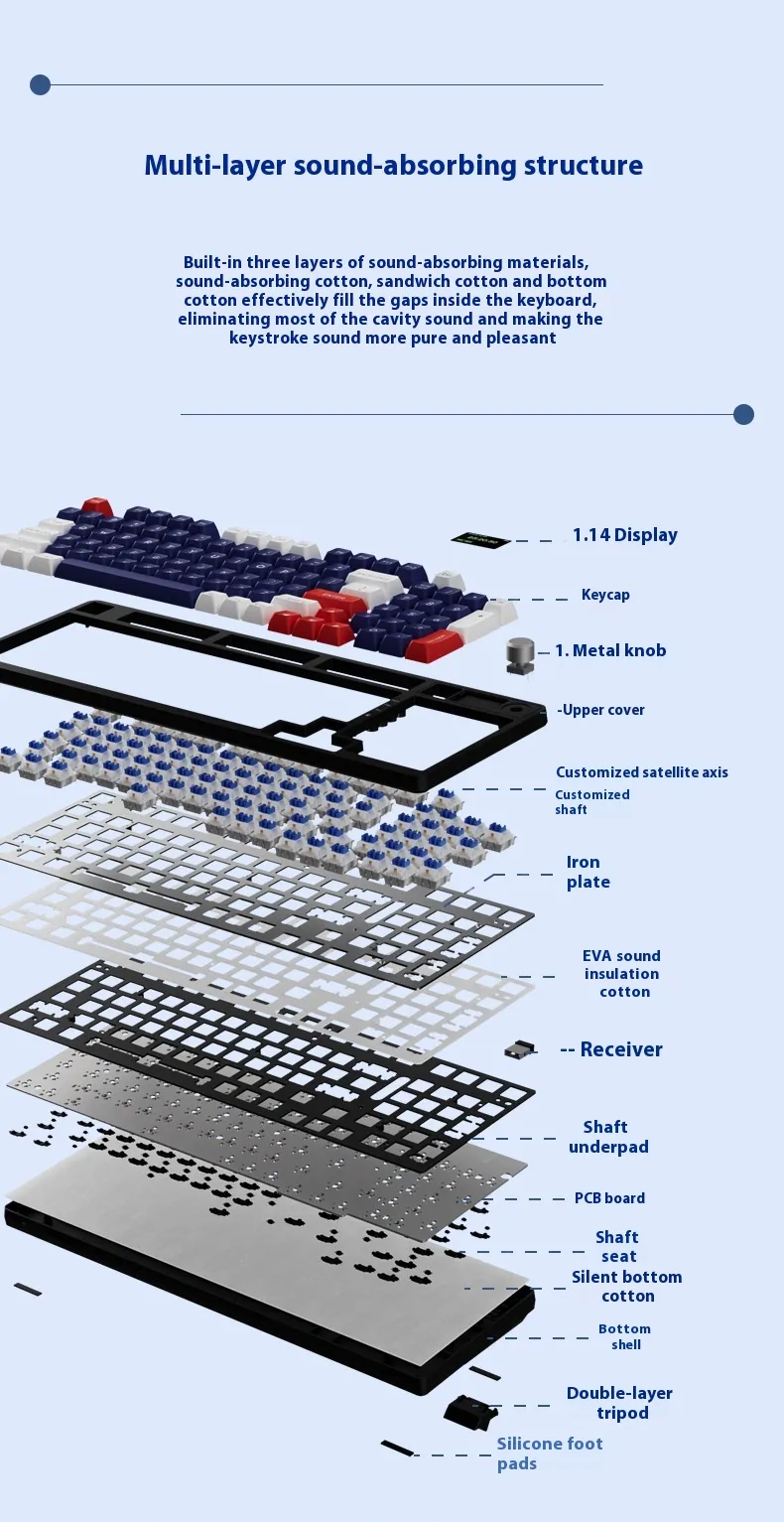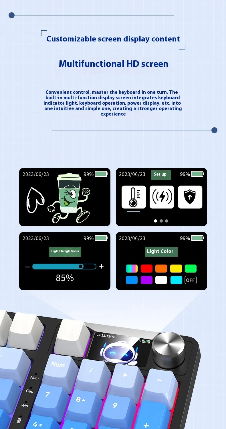 29style: 98 key the third mock examination - white background - fog blue (no screen version/metal knob),