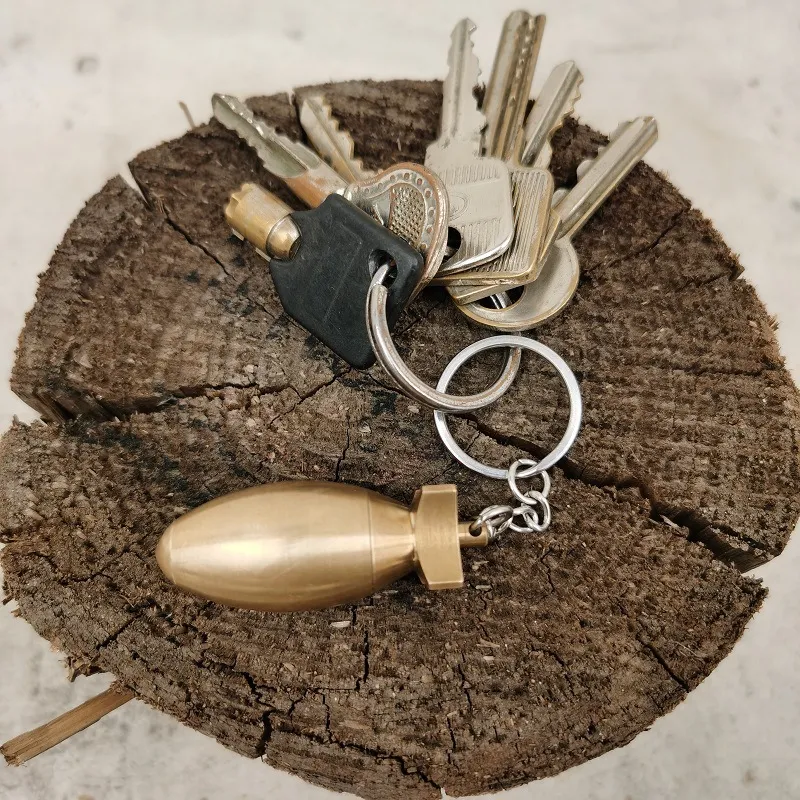 A Brass Bomb Shaped Medicine Bottle Keychain