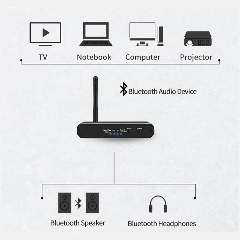 The A2DP Bluetooth transmitter for TV is compatible with a wide range of devices. Whether your TV has an HDMI, AUX, or optical output, these transmitters can easily connect to various TV models, making them a versatile solution for enhancing your entertainment system. Additionally, they work with all Bluetooth-enabled devices, including headphones, soundbars, and speakers.