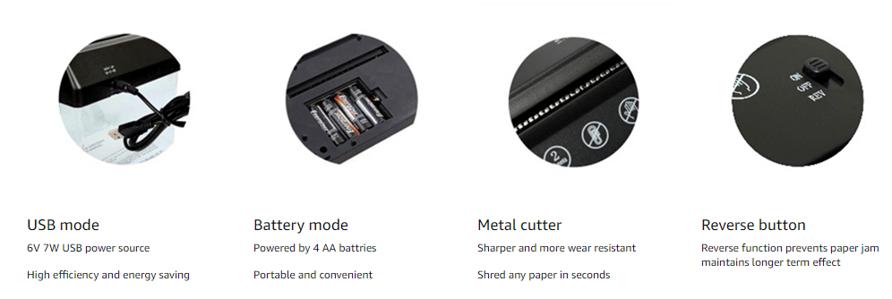 Widely Application Mini USB shredder designed for A6/folded A4 paper, bills, receipts,PP plastic etc