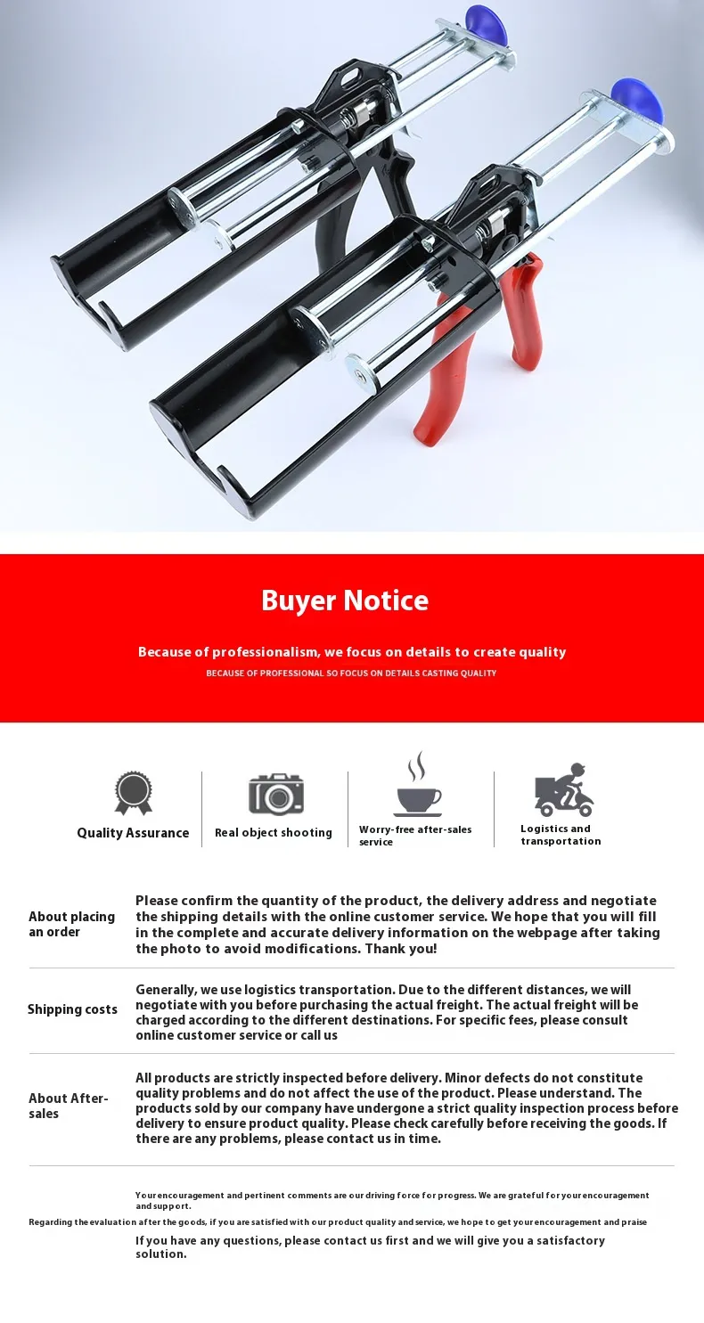 The AB Two-Component Manual Push Metal Glue Gun is engineered for industrial-strength bonding tasks, delivering unmatched precision, durability, and control when working with dual-component adhesives. Designed for use with AB epoxy resin, acrylic, or PU glues in 1:1 or 2:1 cartridge ratios, this manual glue applicator is ideal for craftsmen, repair specialists, and industrial professionals.