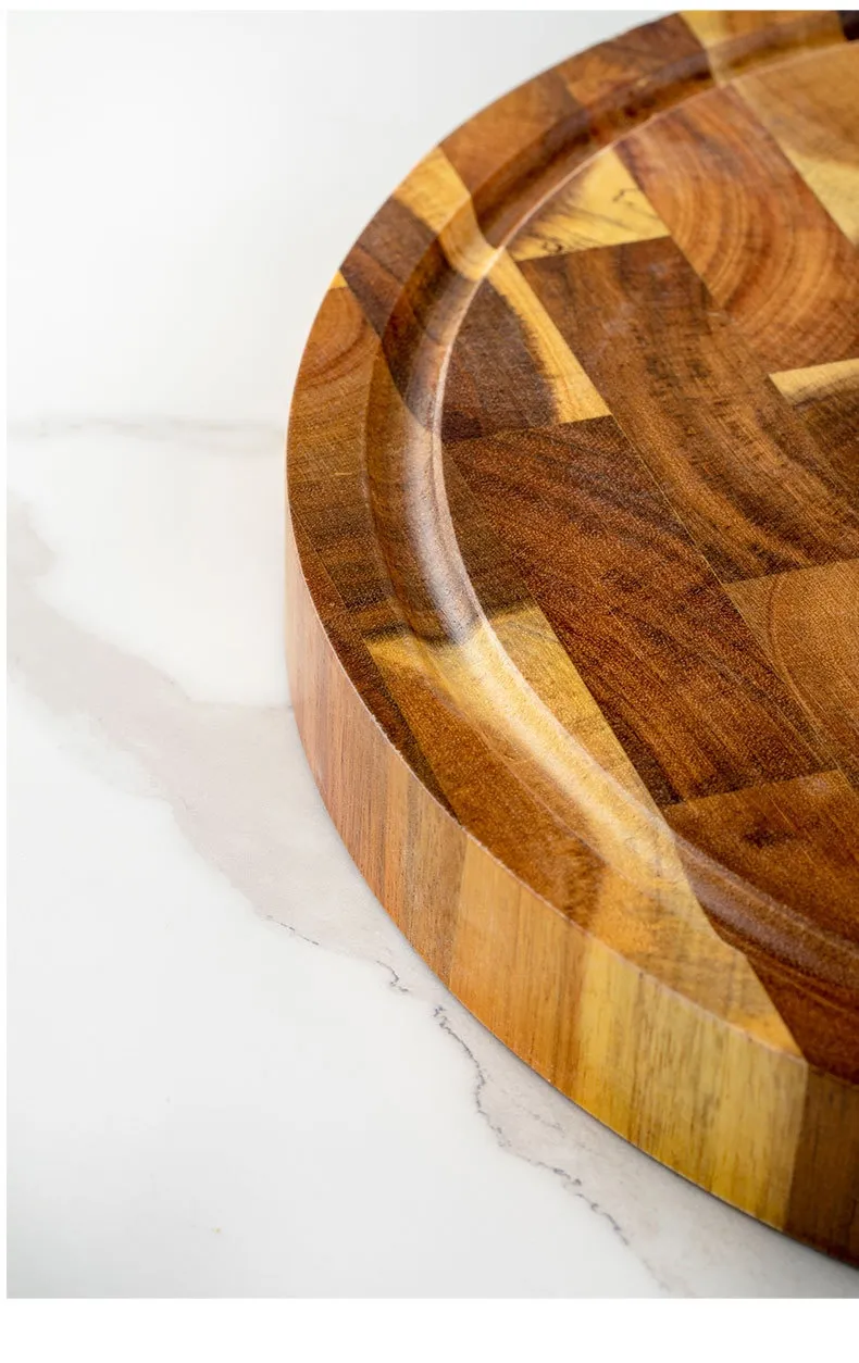 The rich, natural wood grain of acacia adds a touch of warmth and sophistication to your kitchen. Whether you have a contemporary, rustic, or traditional kitchen, an acacia chopping board fits perfectly with any design scheme. Its elegant look makes it ideal for entertaining guests, serving meals, or simply displaying on your countertop.