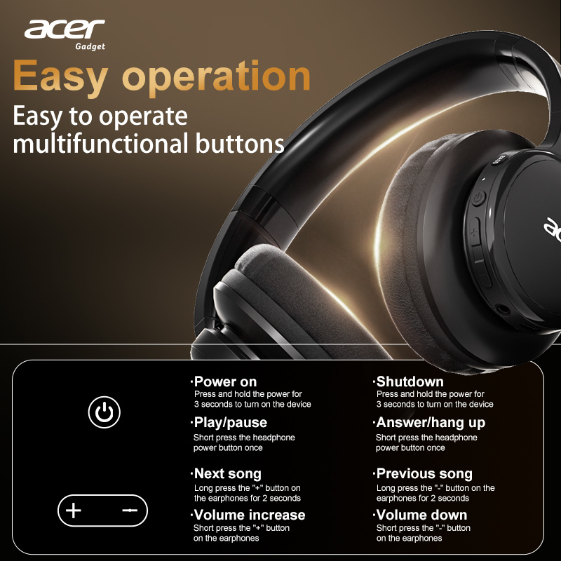 Ease of use is essential for daily headphones. These Acer wireless headphones feature simple, user-friendly controls.