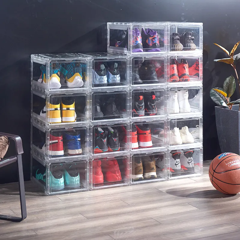 arrangement. Whether you’re organizing a small shoe collection or a large one, these boxes can be stacked vertically or arranged side by