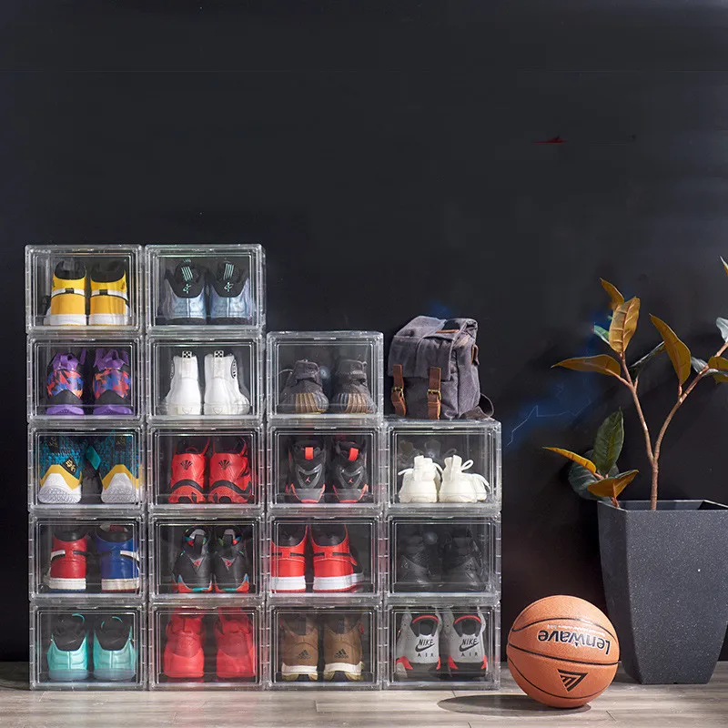 arrangement. Whether you’re organizing a small shoe collection or a large one, these boxes can be stacked vertically or arranged side by
