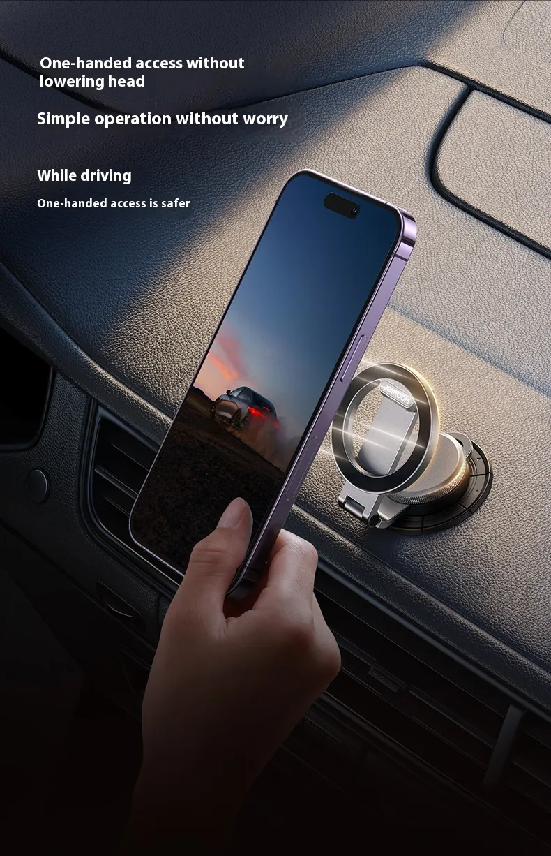 Equipped with a strong magnetic base, it ensures your phone stays firmly in place, even on bumpy roads. The 360° rotation feature allows for optimal viewing angles, making it ideal for navigation, calls, or media use. Crafted from durable materials, this holder is long-lasting and stable for everyday driving.