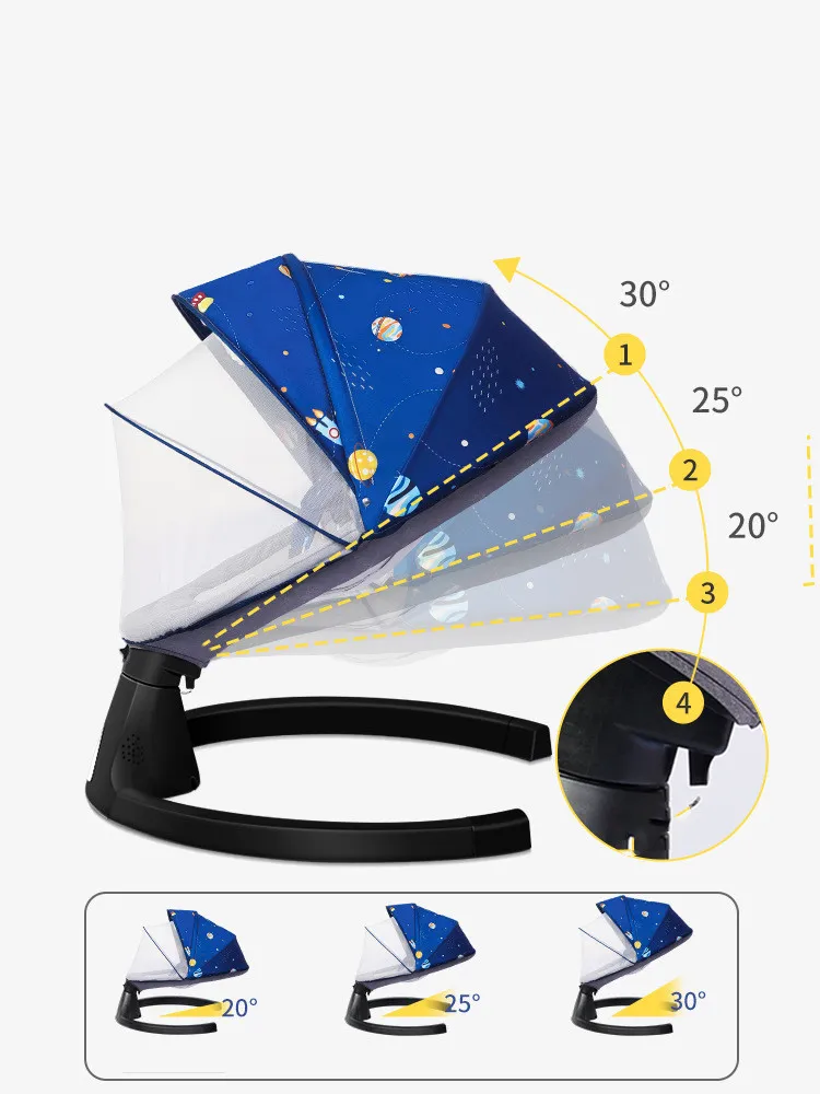 Cradle design: The five-speed automatic swinging cradle liberates the mother's hands, and the baby sleeps more safely