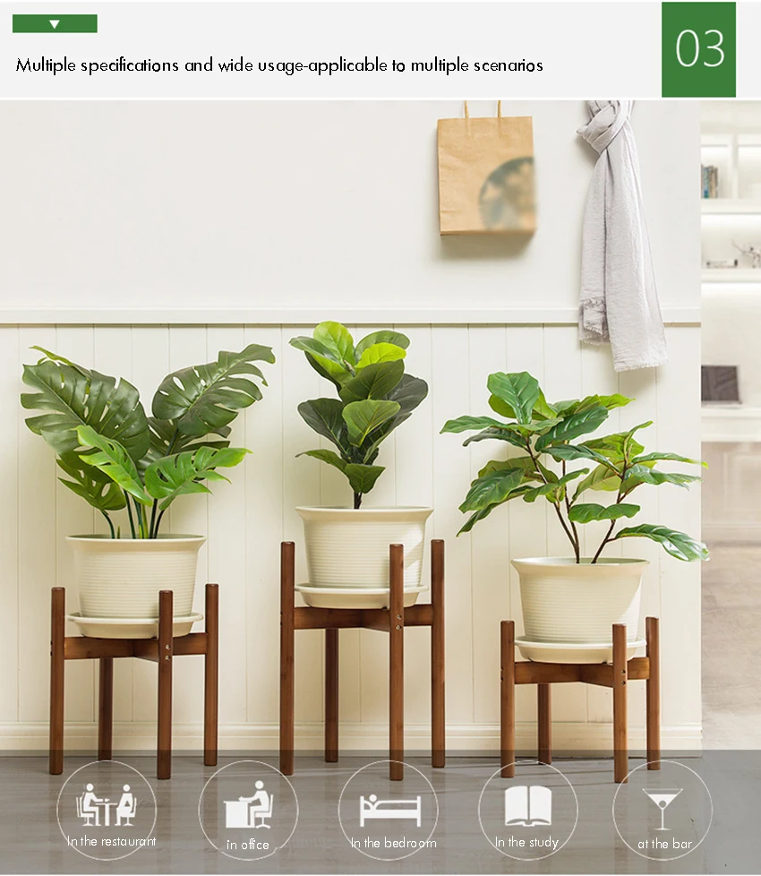 durable bamboo wood, this plant stand combines functionality and style, offering a versatile way to elevate the look of your indoor plants.