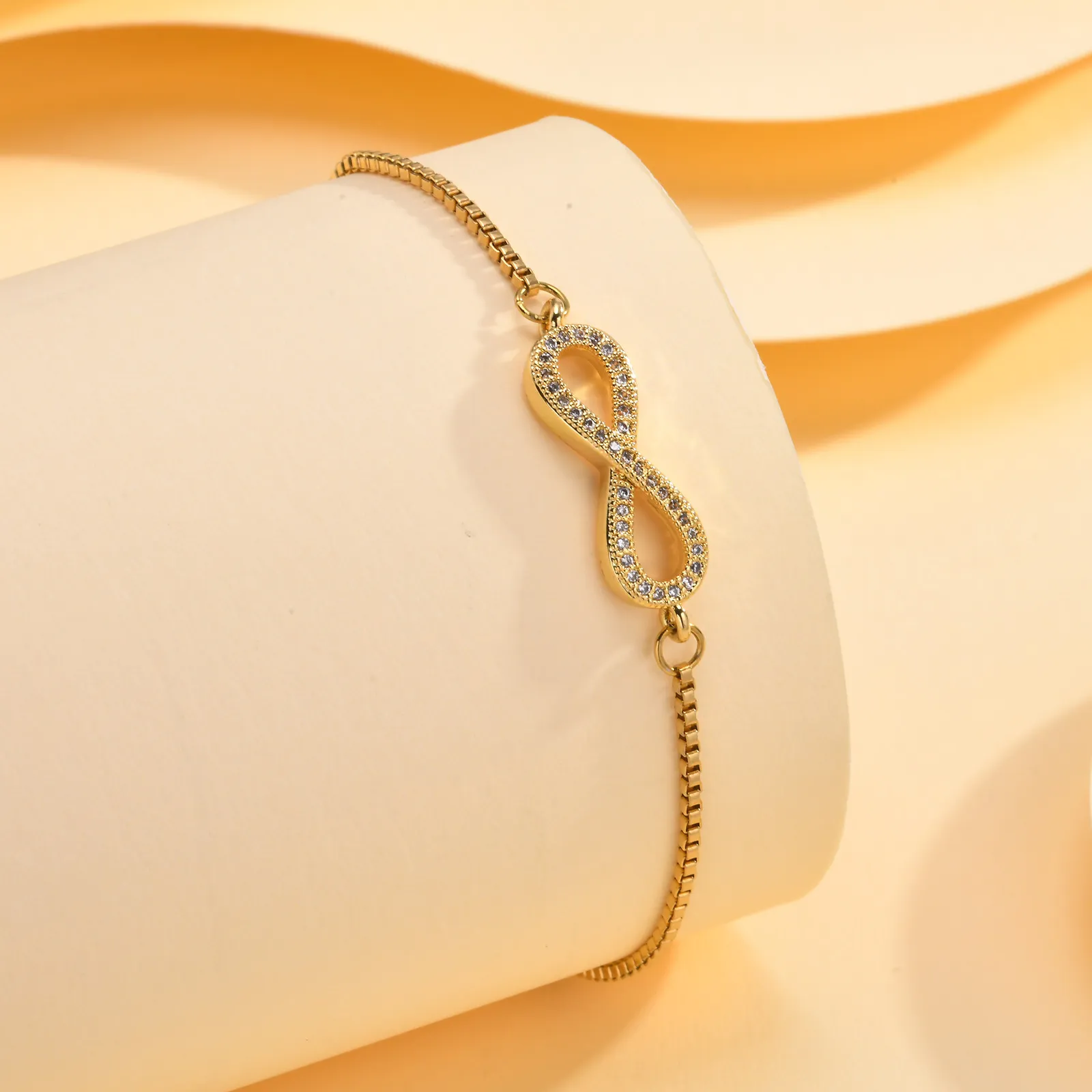 This bracelet is designed to be both versatile and elegant, making it suitable for a wide variety of occasions. Whether you’re wearing it with casual daywear, a chic evening outfit, or a formal dress, this bracelet will add the perfect touch of sophistication to any look. The combination of the infinity symbol, box chain, and zircon stones makes it a timeless piece that can complement various personal styles and wardrobes.
