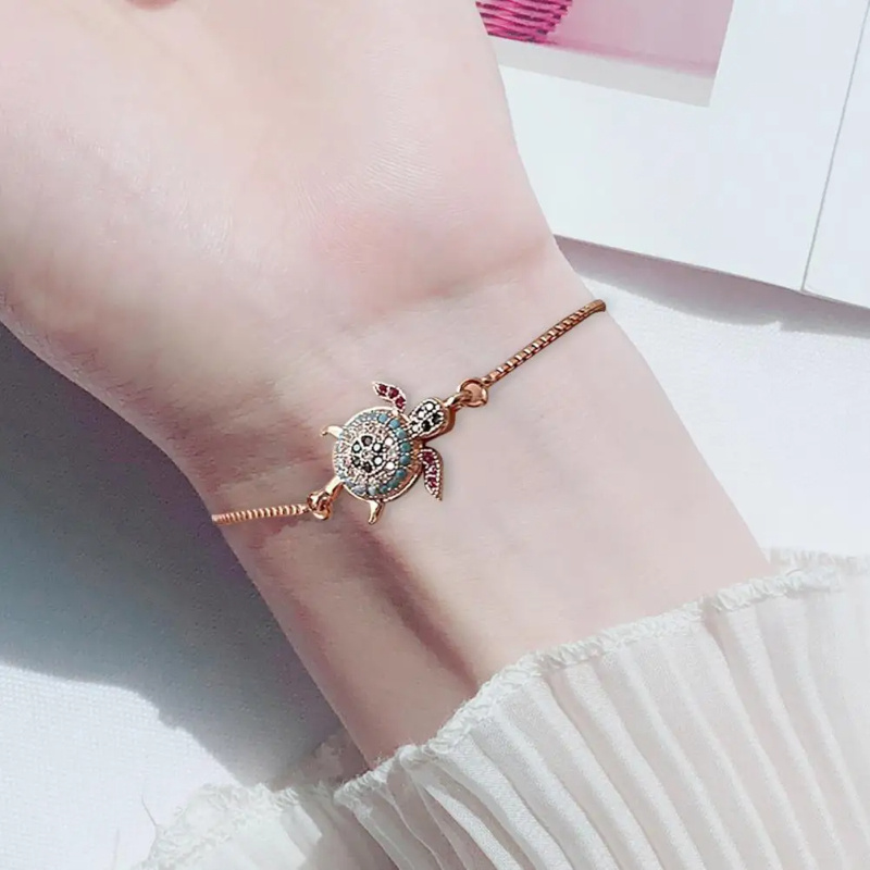 Upgrade your jewelry collection with our Turtles Bracelet. Order now and enjoy a sparkling, adjustable accessory that adds elegance to any occasion!