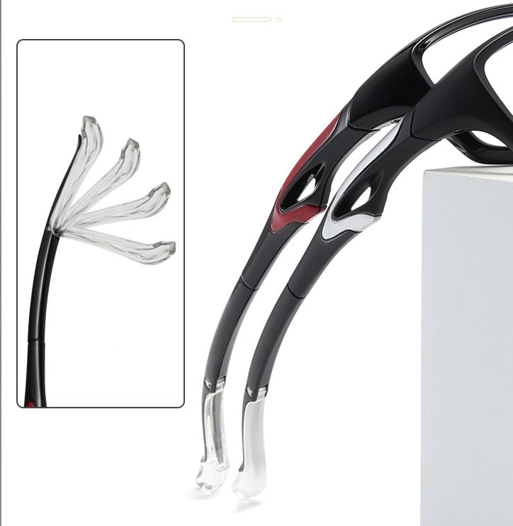 Enjoy a secure and comfortable fit with our curved temples. Designed to follow the natural contours of your head, these temples provide stability and prevent slipping during any activity. Experience the perfect blend of style and stability that our ergonomic temples offer, no matter how active you are.
