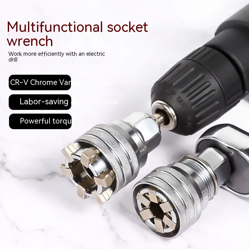 Constructed from durable metal materials, the Adjustable Universal Socket Wrench is built to handle regular use across a variety of tasks. Its robust design supports both light household jobs and more demanding mechanical applications. The wrench fits standard drive tools, making it compatible with common ratchets, drills, and extension bars.