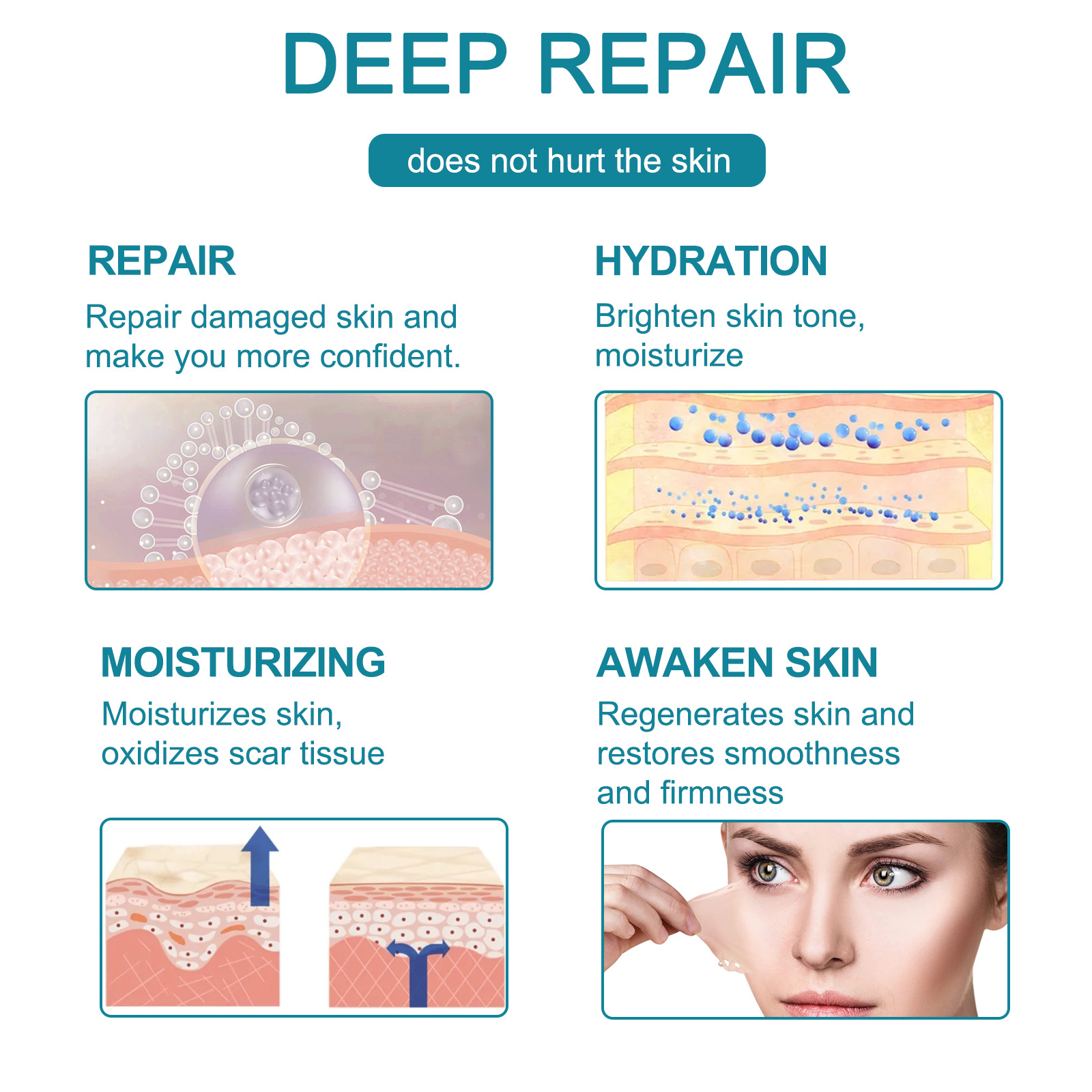Allantoin Extract:With penetrating properties, allantoin can help promote cell regeneration and repair damaged tissues. It
