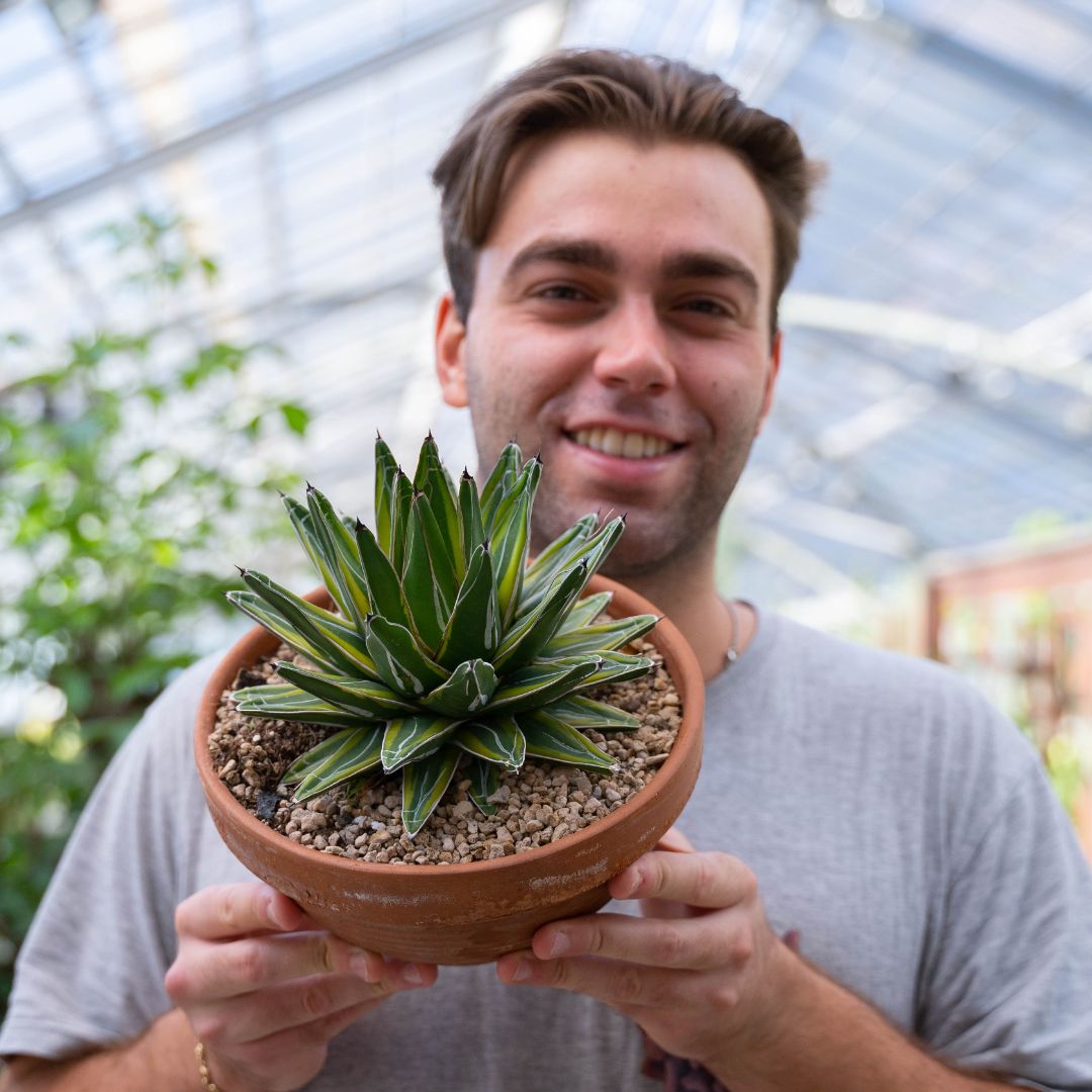 Whether gracing a rock garden, accentuating a desert-themed landscape, or serving as a focal point in a succulent arrangement, Agave victoriae-reginae elevates any setting with its regal presence. Its geometric precision and low-maintenance nature make it a prized addition to both outdoor gardens and indoor spaces, where it effortlessly commands attention and admiration.