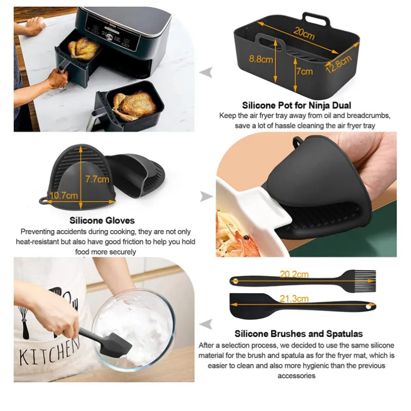 Dual Pot Design for Efficient Cooking: The Air Fryer Accessories Rectangular Set includes two separate