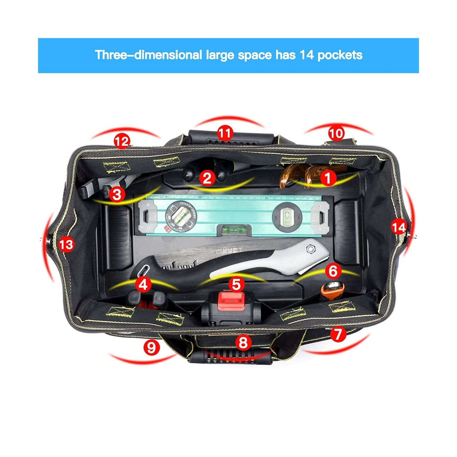 Multiple functional pockets, a three-dimensional layout, and tools can be stored in an orderly