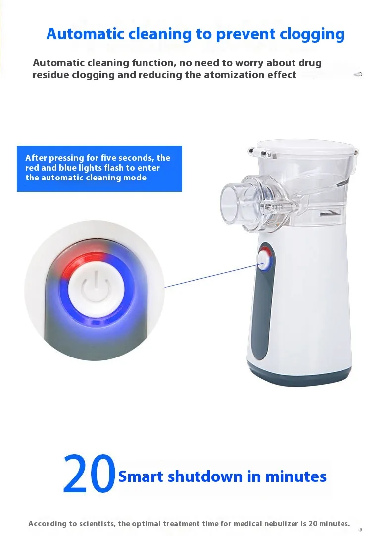 Effortless Cleaning for Consistent Performance: Equipped with an auto-clean function, our nebulizer prevents clogging effectively. Simply soak the chamber in a vinegar solution, rinse, dry, and activate the self-cleaning mode for seamless performance in any situation.