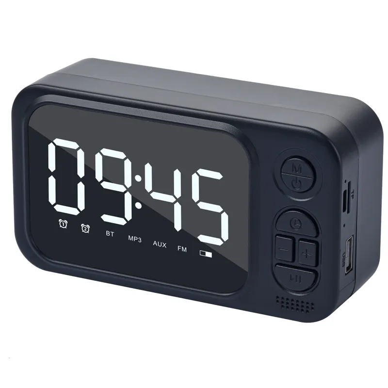 In conclusion, the Alarm Clock Bluetooth Speaker Outdoor Portable Wireless Card Speaker Radio is an all-in-one device that meets all your audio needs. Whether you're at home, outdoors, or on the move, this portable speaker provides high-quality sound, FM radio access, and alarm clock functionality in one compact package. With Bluetooth connectivity, micro SD card support, and a long-lasting rechargeable battery, it offers everything you need in a portable speaker. Invest in the Alarm Clock Bluetooth Speaker today and enjoy music, radio, and reliable alarm functionality wherever you are.