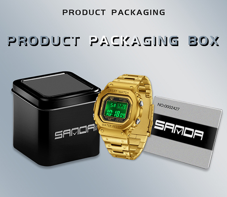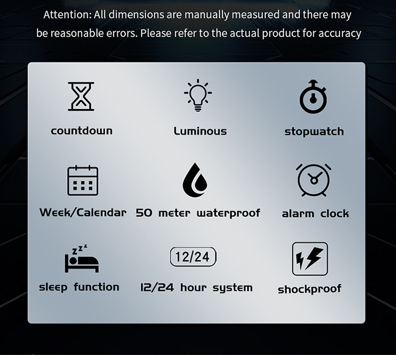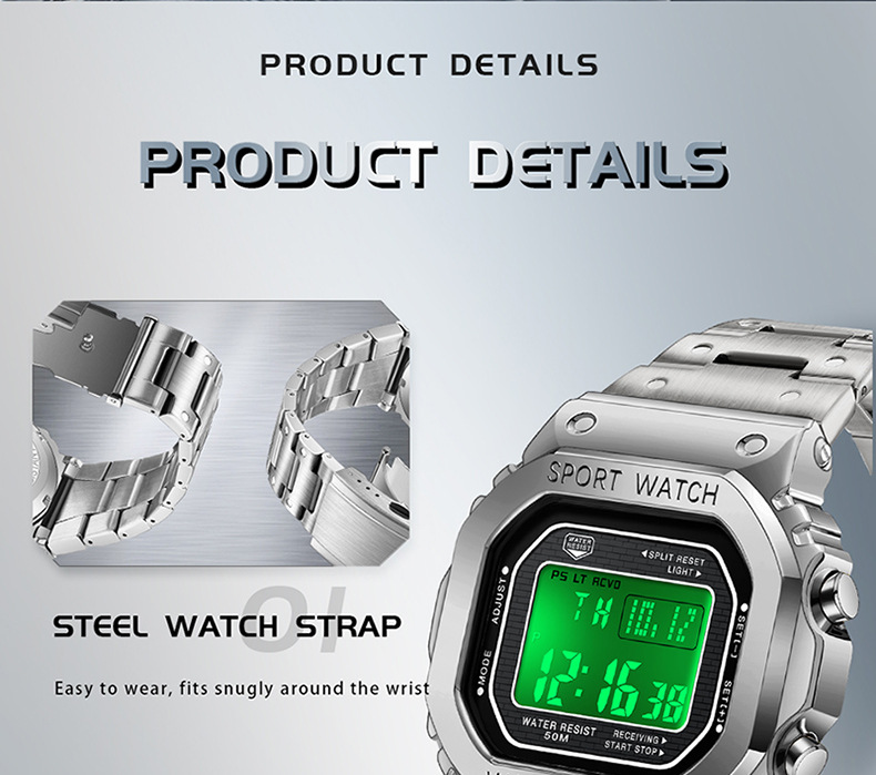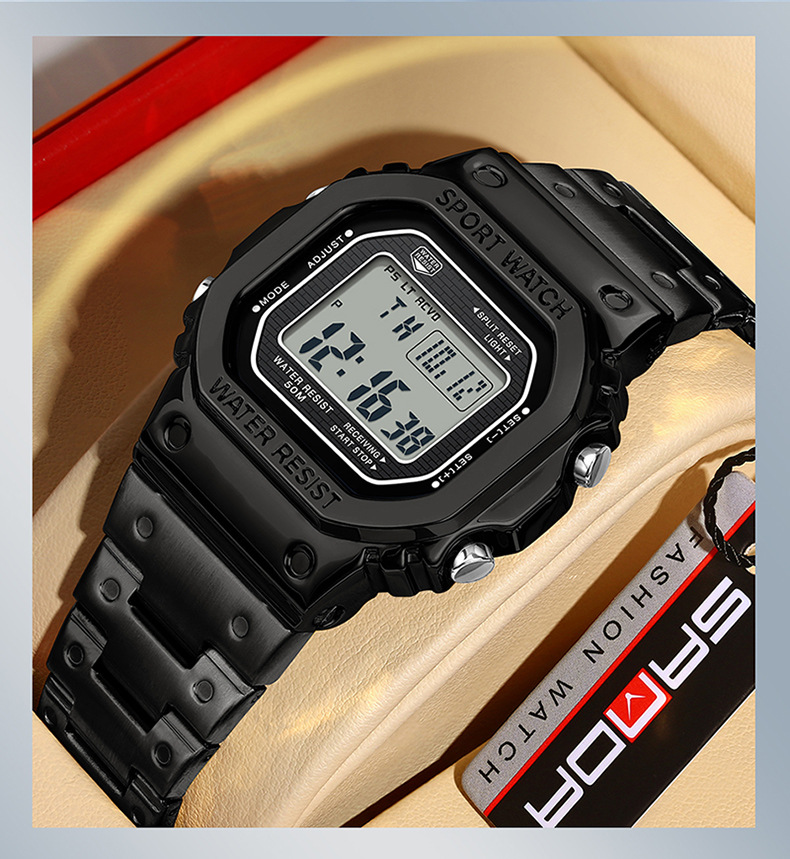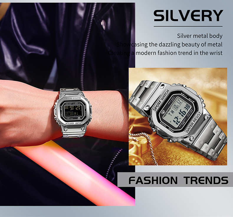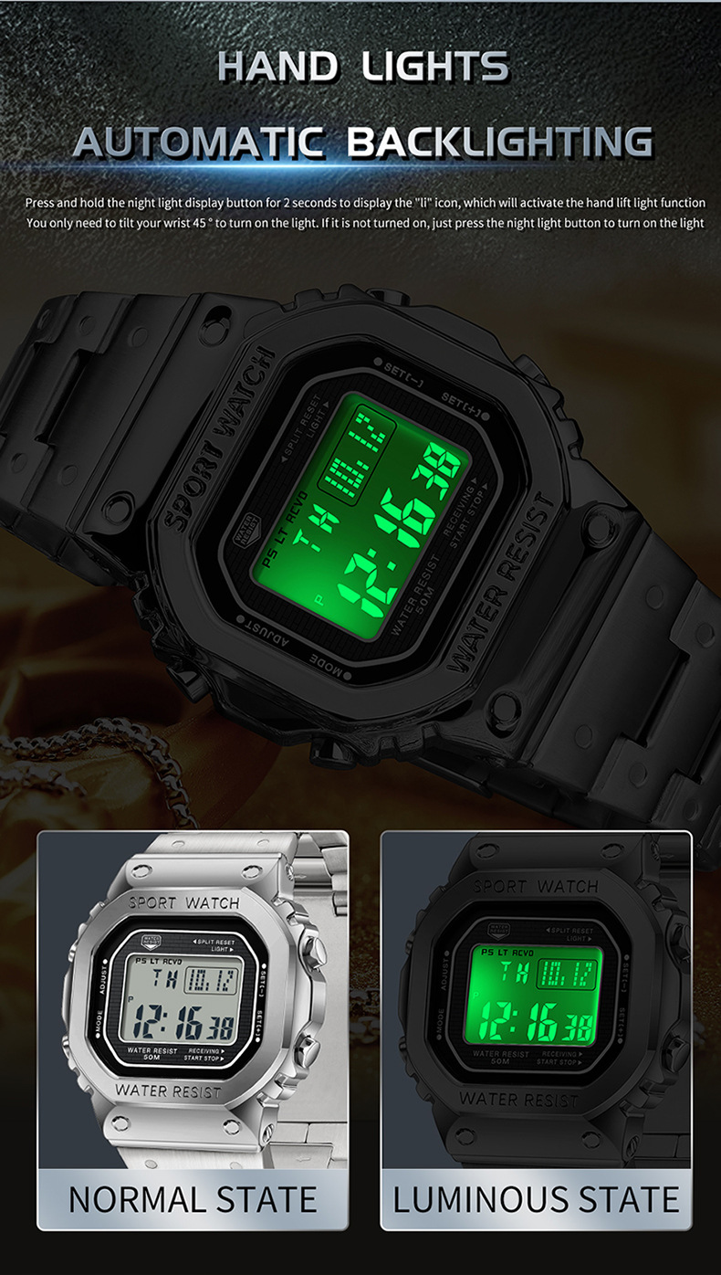 Alarm Clock Multifunctional Sport Watch Square Fashion Hand-lifting Light Waterproof