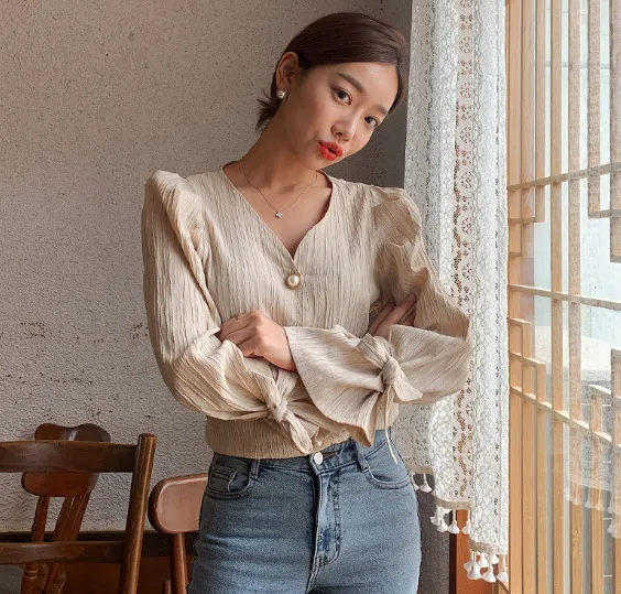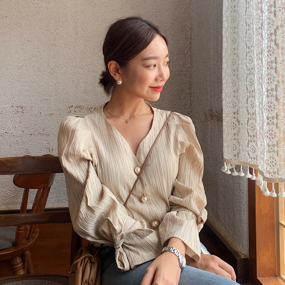 Alien Kitty Korean Retro Elegance Casual Sweet Solid Pearls Chic Fresh High Quality Loose Vintage All Match Women Shirts