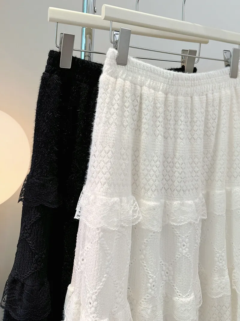 All-match Lace Stitching Lace Hollow Cake Dress