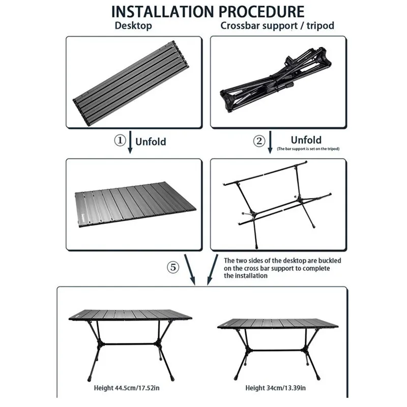 1.Rugged and Durable: The table features a strong load-bearing capacity, which is made of high-quality aluminum alloy material, stable,