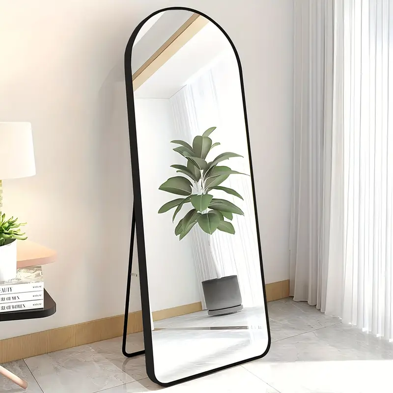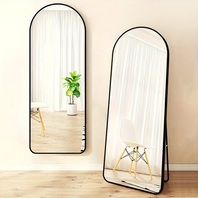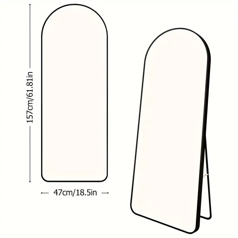 Aluminum Alloy Frame Arched Mirror 157Ă—47cmMaterial: Aluminium Alloy, Glass Product Dimensions (LWH): 157Ă—47Ă—1.5cm Package Dimensions (LWH): 164Ă—55Ă—6cm Weight: 6.8KgCharacteristic:Full Length Mirror: This Is A Full Size Mirror, Enough For You To See Your Entire Figure In A Single Glance And Bring You Light, Beauty And Confidence. The Rounded Corner Design Is More Safer And Protects Against Scratches During Use.Unique Design: The Top Of The Floor Mirror Is Designed With A Unique Smooth Arched-top Frame, Which Especially Attracts People's Attention And Highlights The Beauty Of The Mirror.The Thin Aluminum Alloy Frame Makes The Mirror Looks More Classic And It Is Suitable For Dressing In Any Room.High-quality Glass: The Full Body Mirror Is Made Of High-quality Float Glass Which Can Provide Super HD Imaging And Undistorted Reflection.Easy Installation: Our Full-length Mirrors Can Be Leaned To The Wall Or Free-standing With The Stand Anywhere In Your Room. It Can Also Be Hanged Vertically And Horizontally. The Aluminum Alloy Frame Is Very Stable And Durable For Your Daily Use.Package Include 1 Ă— Aluminium Alloy Frame Arched Mirror 1 Ă— Set Of Screws