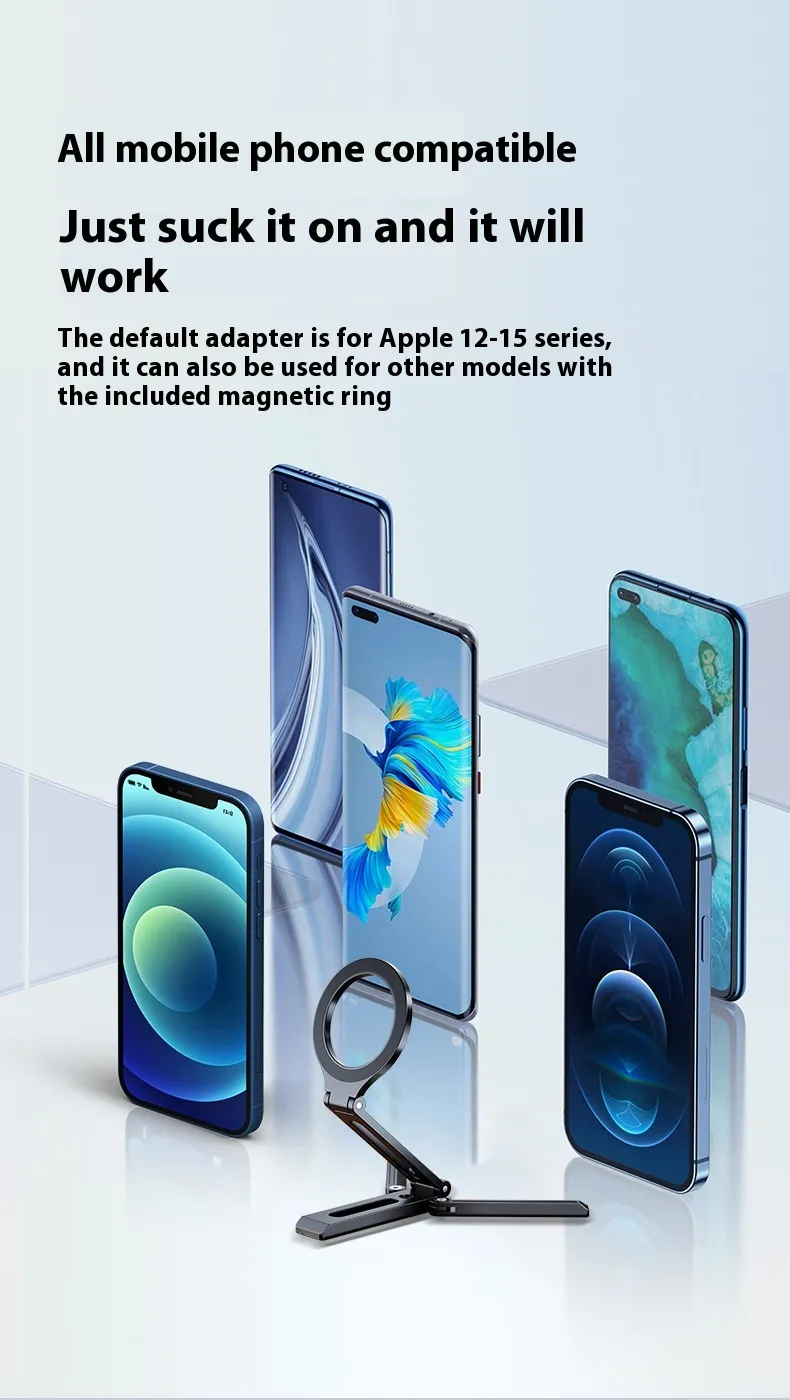 Its magnetic base securely attaches your phone for hands-free operation, making it ideal for video calls, watching movies, or navigation. The foldable structure allows for easy storage and portability, while adjustable angles ensure optimal viewing for any scenario.