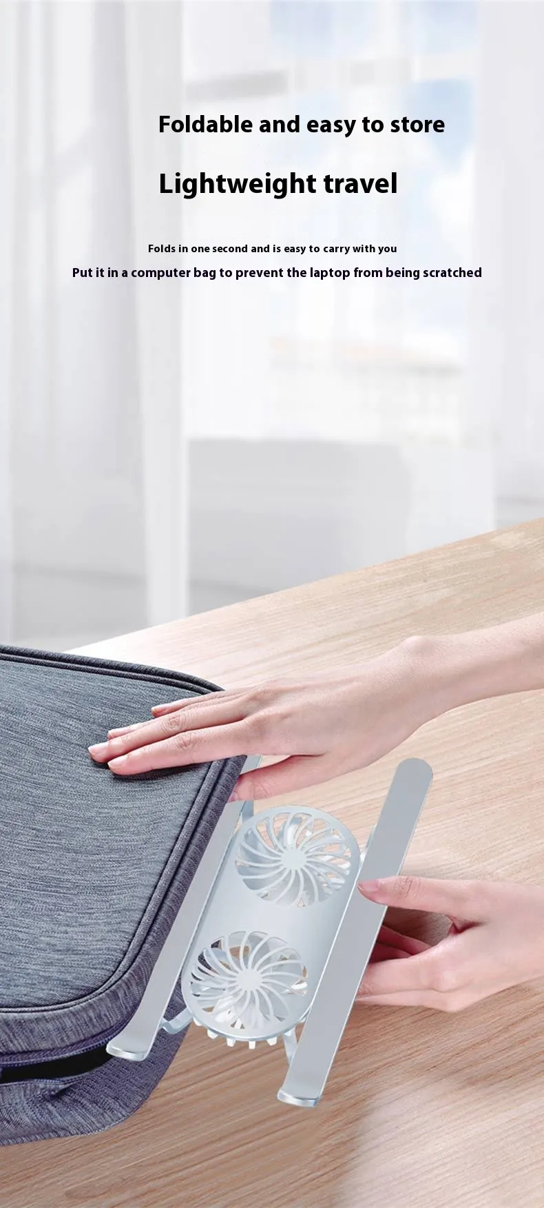 This stand is easy to fold and carry, making it ideal for professionals who need a portable and efficient solution for cooling and elevating their devices on the go. Its lightweight construction ensures that it won’t add extra bulk to your bag or backpack.