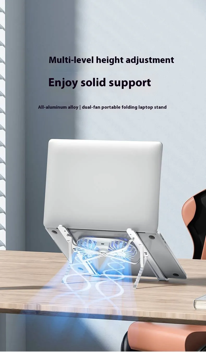 Aluminum Alloy Notebook Stand Portable Folding Lifting Tablet Height Increasing Desktop Twin Fan Computer