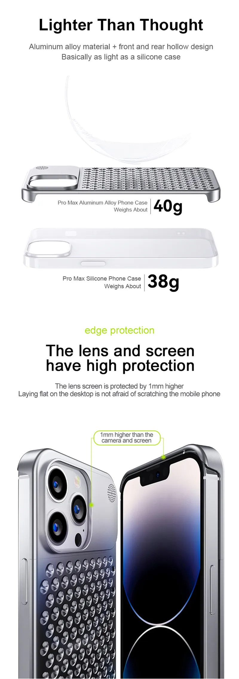 extra protection against scratches on flat surfaces. Whether you're using your phone at work, outdoors, or on the go, the Aluminum Alloy
