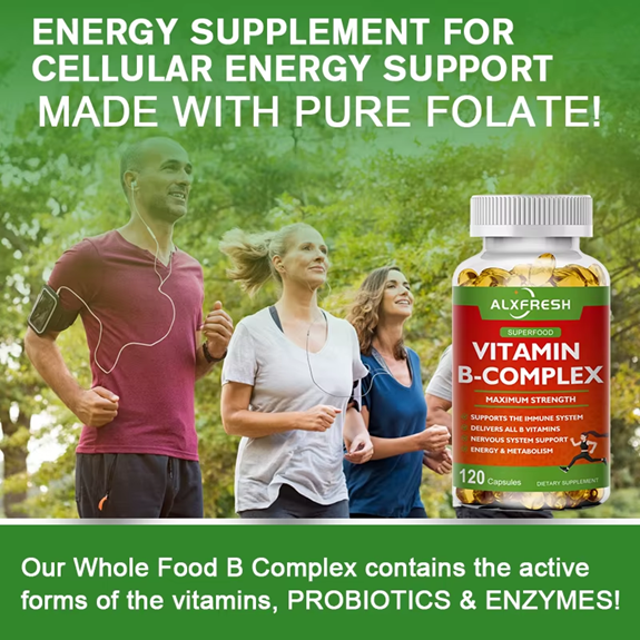 Alxfresh B-Complex Vitamin Supplements (B12 B1 B2 B3 B5 B6 B9 Folic Acid &Biotin), Immune & Energy Support