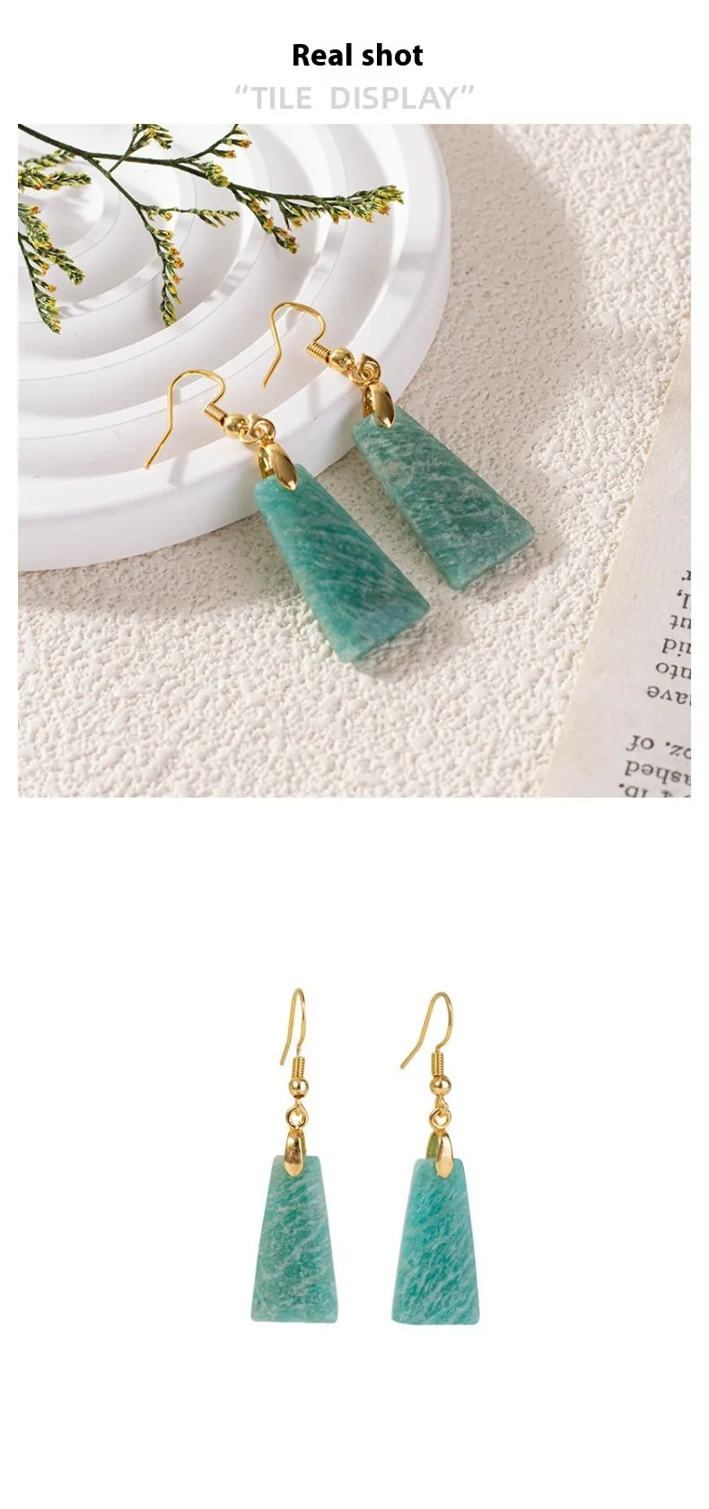 Amazonite Rough Stone Cut Trapezoid Earrings – European & American Popular Style