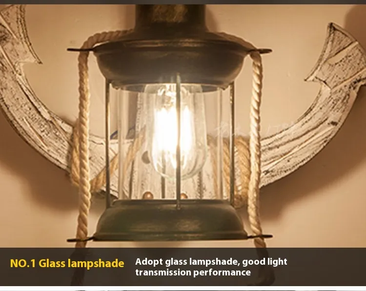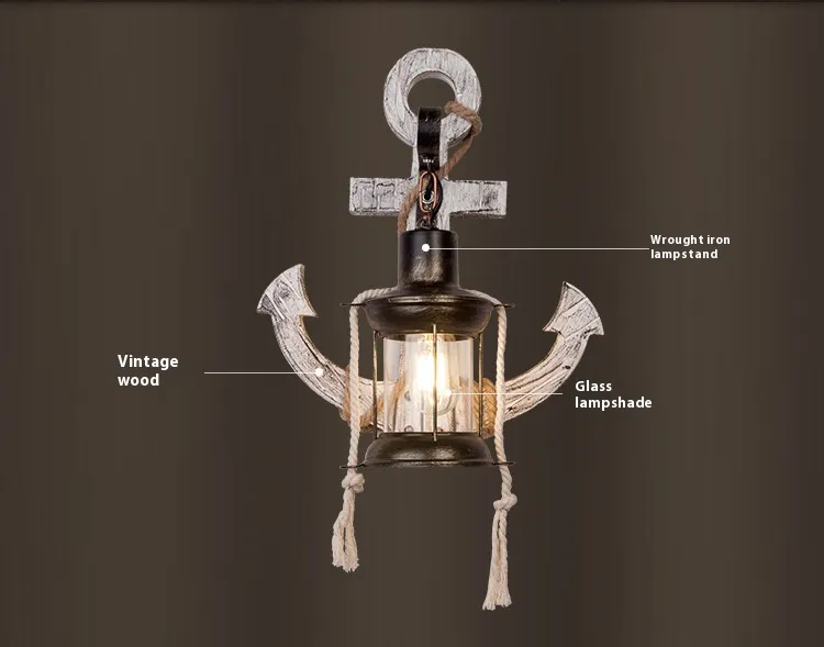 Product Description for American Creative Industrial Style Retro Wall Lamp – Boat Anchor Solid Wood Distressed Lamp
