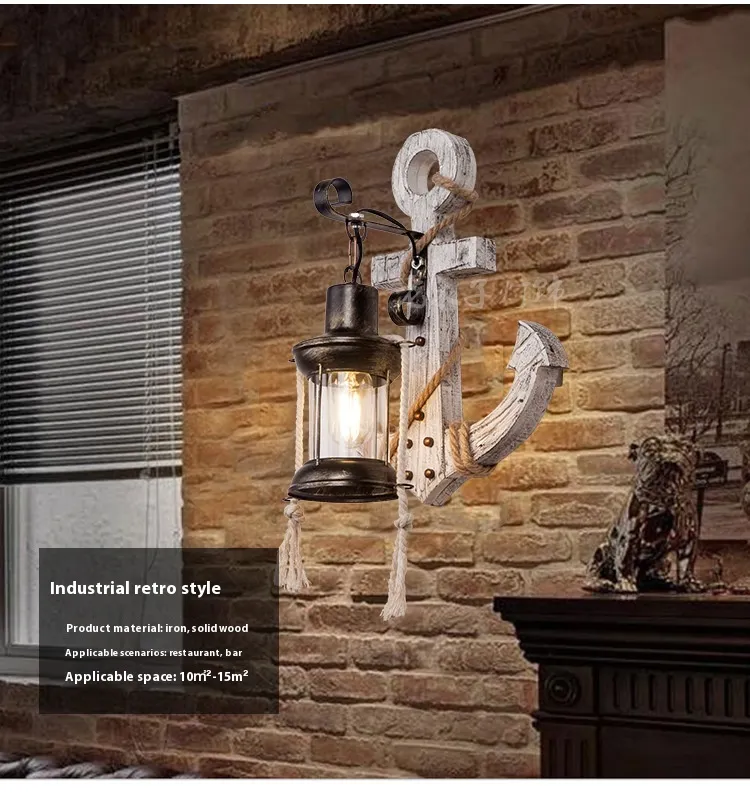 American Creative Industrial Style Retro Wall Lamp Boat Anchor Solid Wood Distressed Lamp