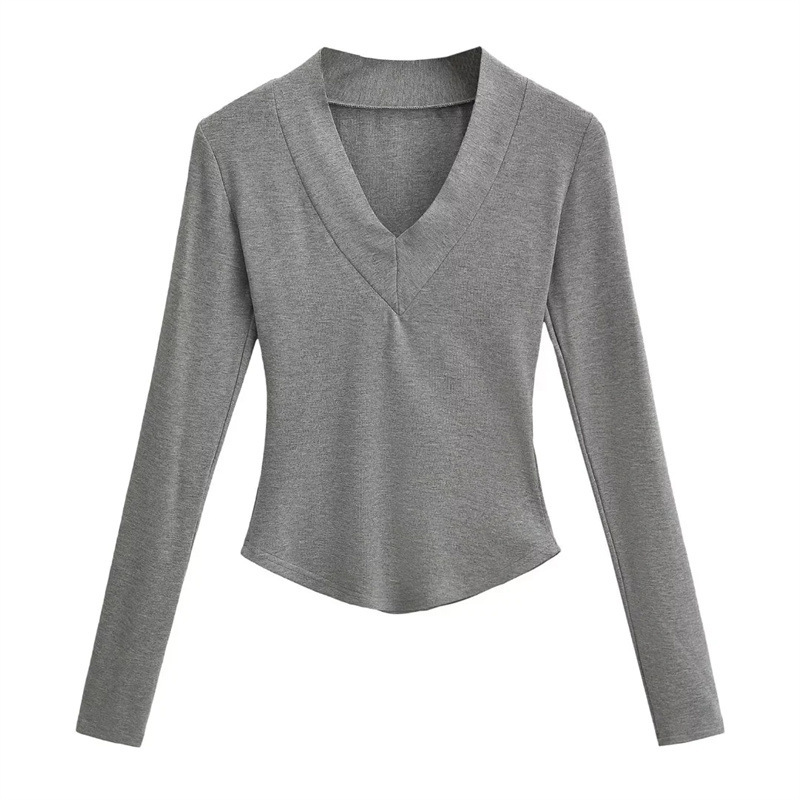 Introducing the American Desire Curved Hem V-Neck Tee, an essential staple in modern casual wear that seamlessly blends classic appeal with