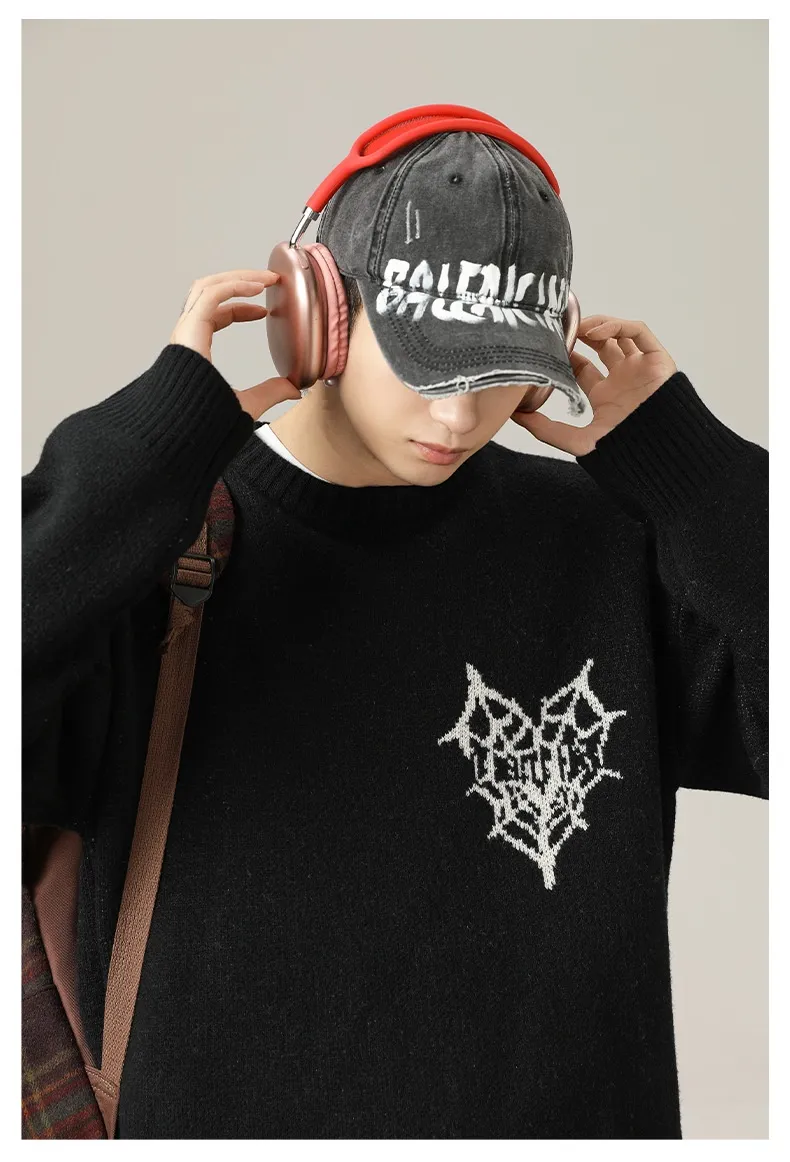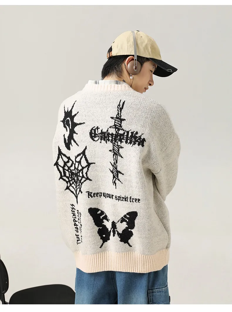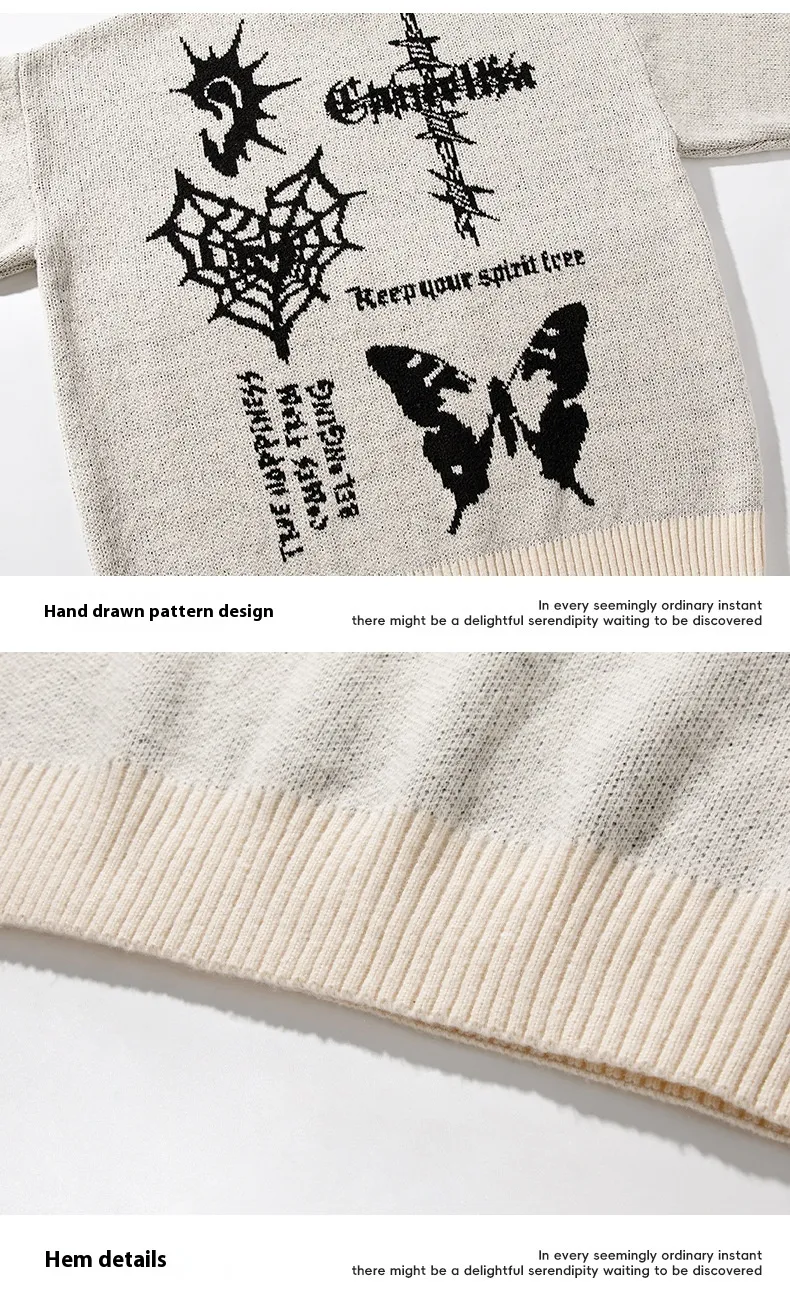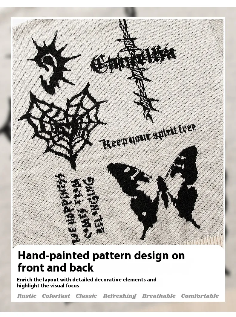 The American Retro Hand-Painted Jacquard Round Neck Sweater is more than just an article of clothing; it’s a piece of art that