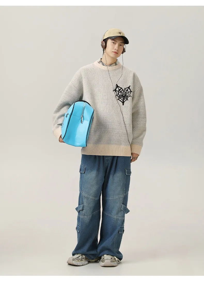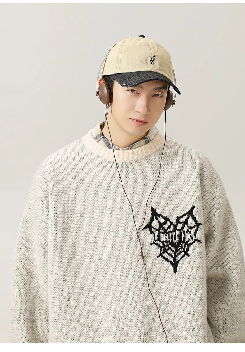 Embrace Vintage Charm with the American Retro Hand-Painted Jacquard Round Neck Sweater