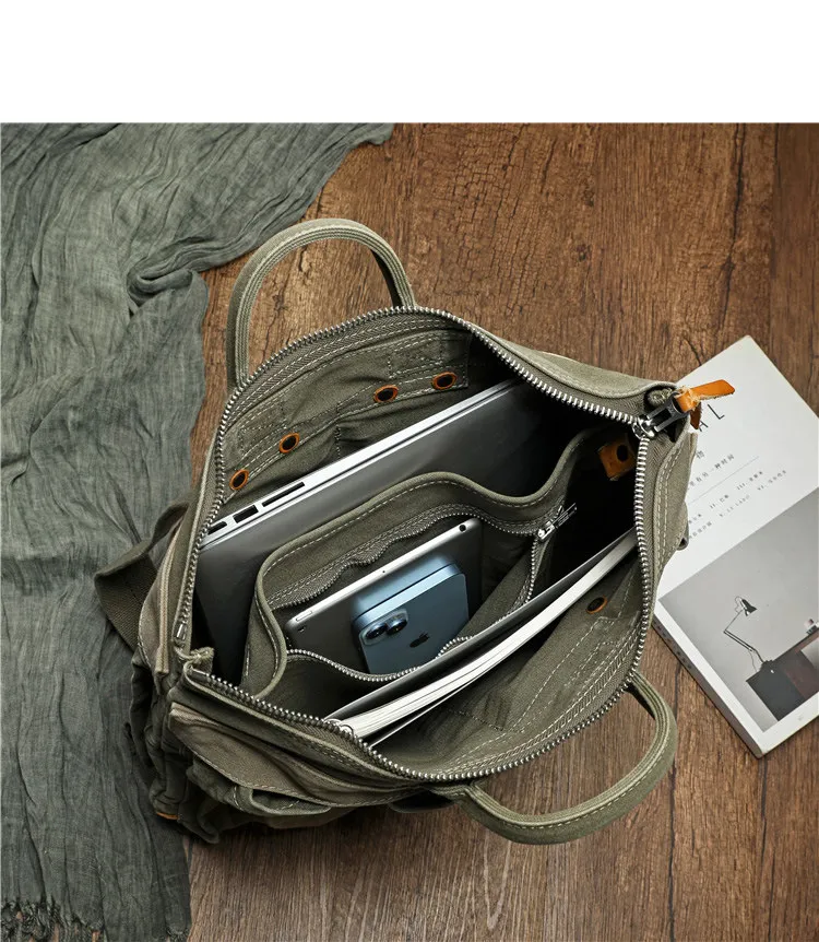 The distressed canvas and leather accents make this backpack both sturdy and long-lasting. It’s designed to handle the demands of outdoor activities, whether you’re riding your motorcycle, hiking up a mountain, or traveling to your next adventure. The water-resistant fabric keeps your belongings safe and dry, even in tough weather conditions.