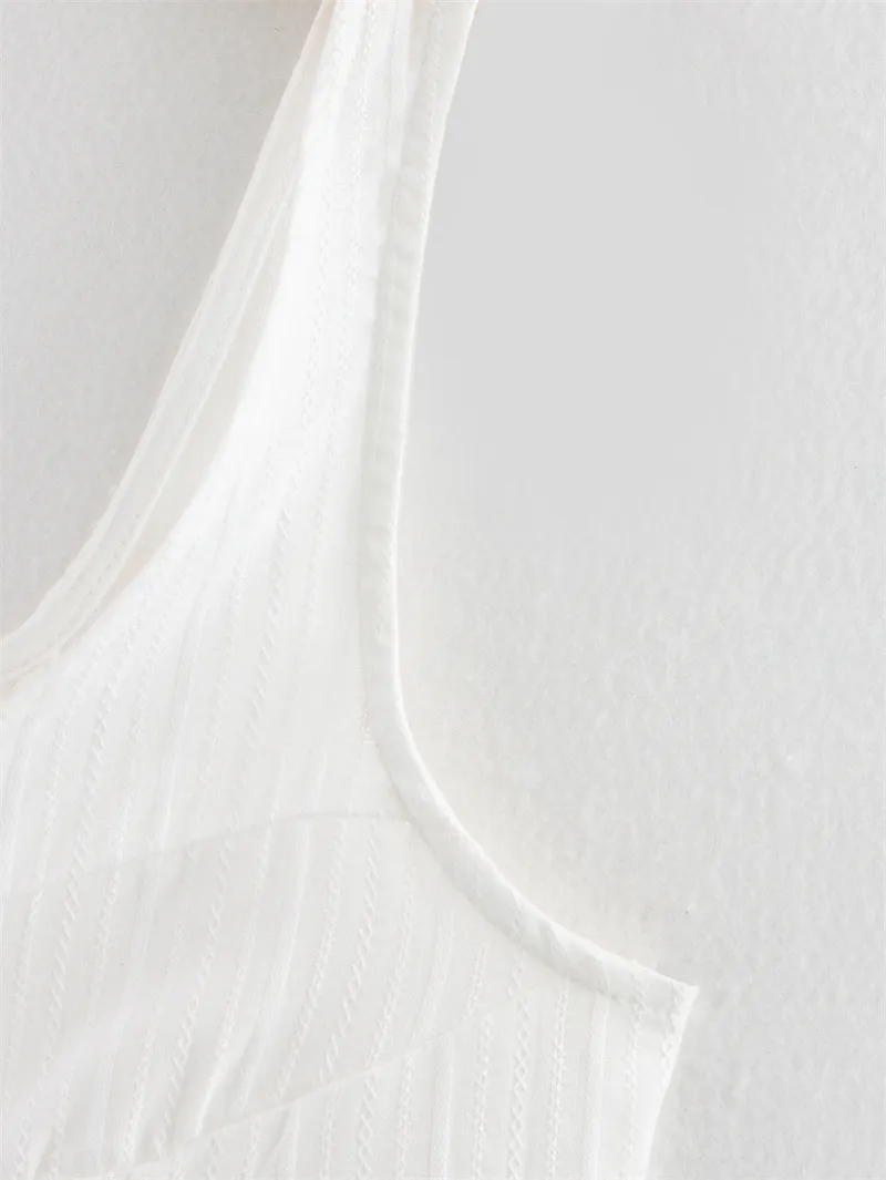 Step into the summer season with the American Style Trendy Solid Color White Strap Top with Rope Sleeveless Short. This top effortlessly combines modern design with comfort, making it a staple piece in any fashion-forward woman’s wardrobe. The crisp white color offers a clean and fresh look, perfect for a variety of occasions, from casual outings to laid-back beach days.