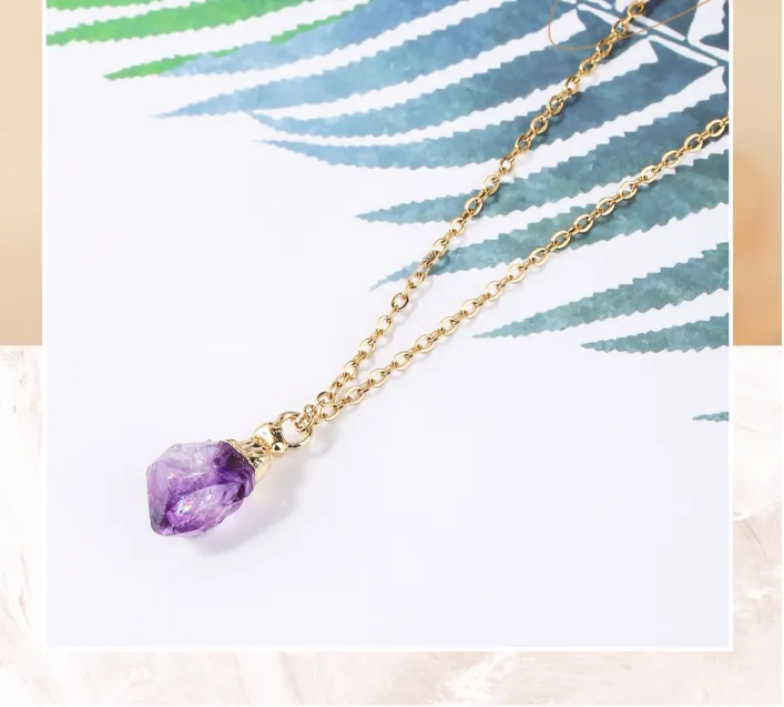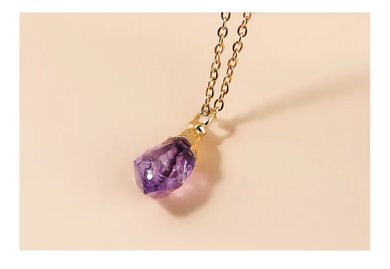 Amethyst Rough Stone Gold Plated Pendant Necklace Simple Style Ladies Jewelry Clavicle Chain