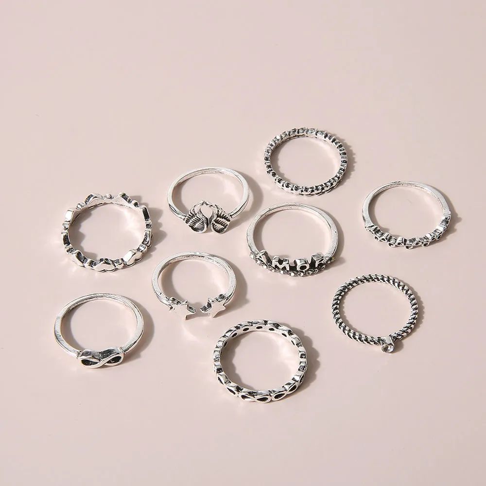 Ancient Silver Wings Five-pointed Star Heart-shaped Cupid AMOR Set Ring