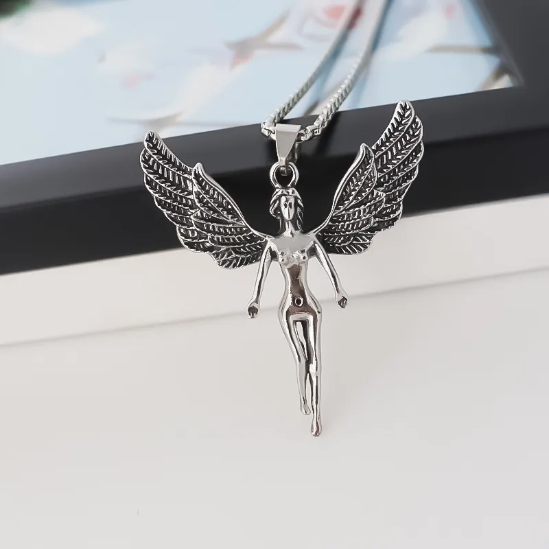 The angel wings symbolize faith, love, and spiritual connection, making this pendant a cherished piece for wearers of all backgrounds.