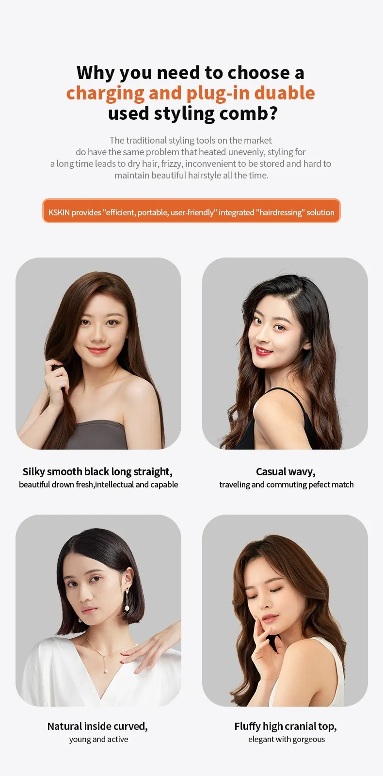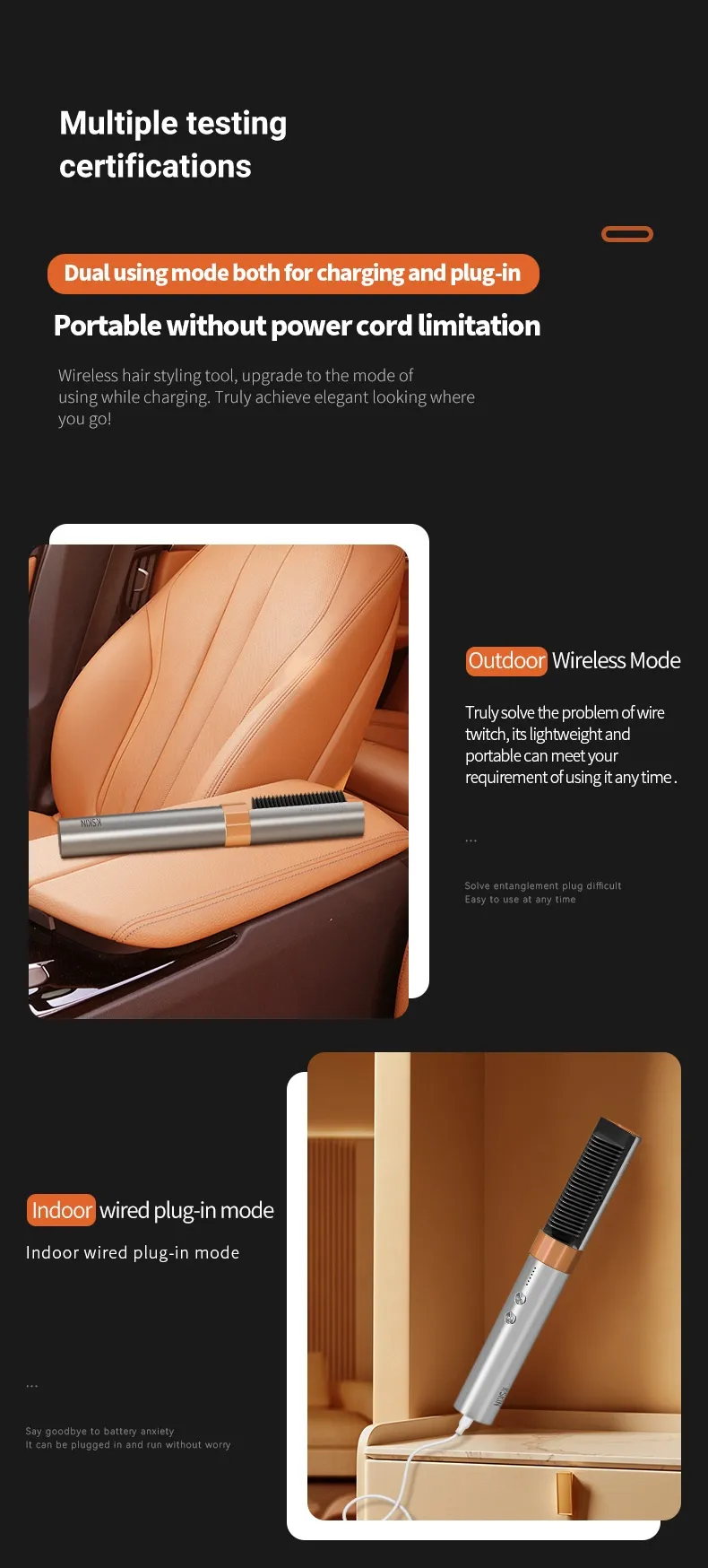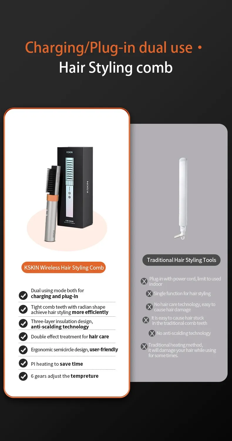 Anion Wireless Straight Comb Wireless Rechargeable Version Portable Dual-purpose