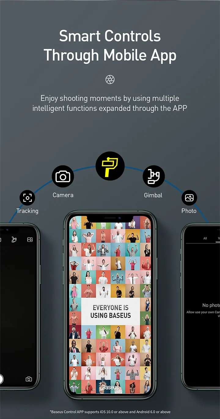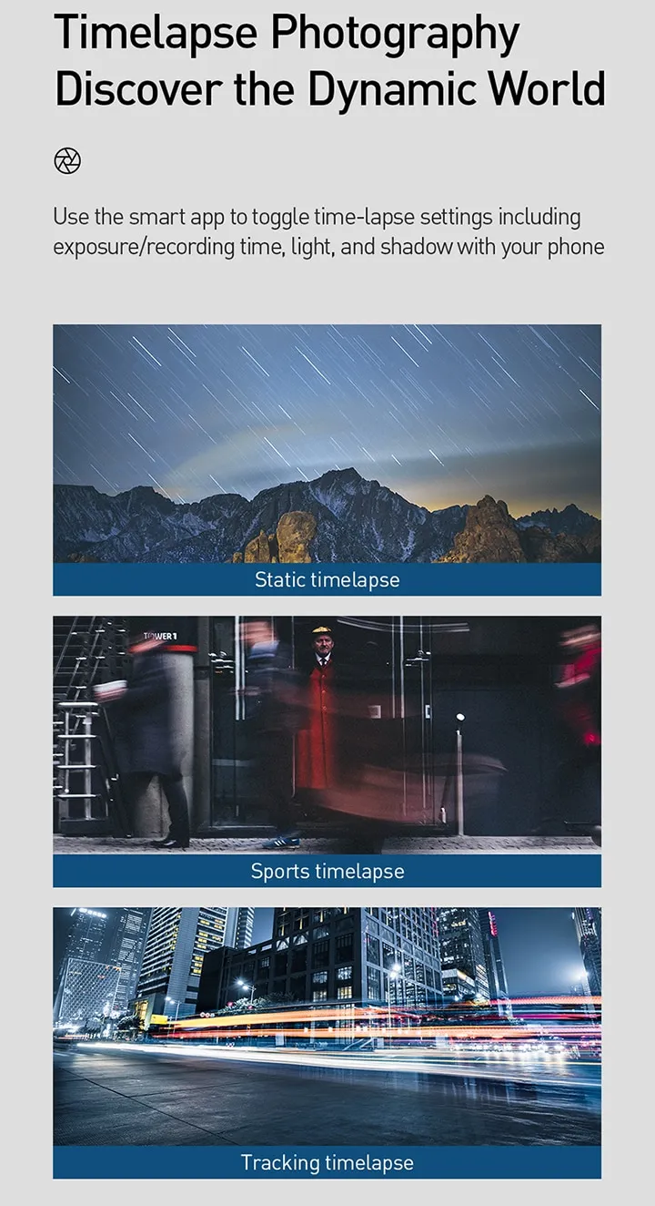 The stabilizer offers a variety of shooting modes, including pan mode, tilt mode, follow mode, and inverted mode, allowing you to choose the best setting for each shot. Whether you want a smooth cinematic pan, a smooth tilt, or even a unique inverted shot, the stabilizer makes it simple to capture stunning footage with minimal effort.