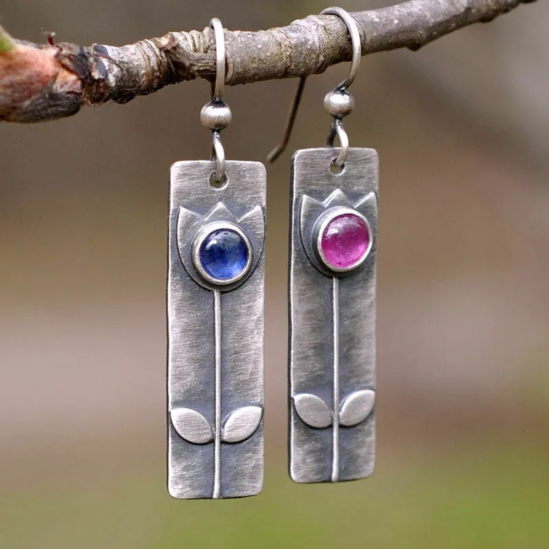 Antique Finish Red Sapphire Earrings – Vintage Elegance with Timeless Charm
