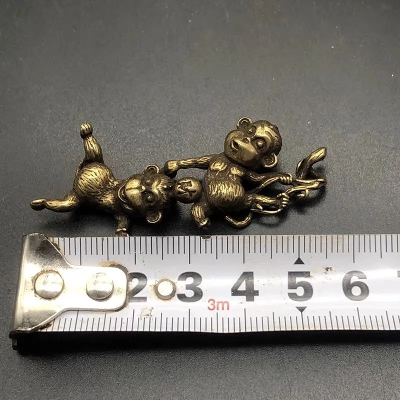 Antique Miscellaneous Bronze Mini Solid Monkey Pendant Zodiac Monkey Keychain Pendant Hand Pieces