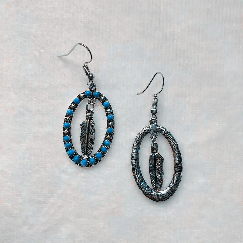 Crafted from high-quality antique silver, these earrings exude timeless elegance and durability. The silver is treated to achieve a vintage finish, giving the earrings an aged, worn-in charm that complements the turquoise and feather design. The antique silver not only adds to the earrings' vintage appeal but also ensures that they are durable and long-lasting, resistant to tarnishing and fading over time.